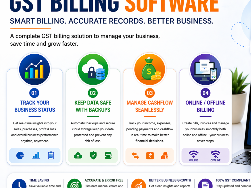 ಇಂದಿನ ಡಿಜಿಟಲ್ ಯುಗದಲ್ಲಿ ವ್ಯವಹಾರವನ್ನು ಸರಿಯಾಗಿ ನಿರ್ವಹಿಸುವುದು ತುಂಬಾ ಮುಖ್ಯವಾಗಿದೆ. ಕೈಯಿಂದ ಲೆಕ್ಕ ಹಾಕುವ ಪದ್ಧತಿಯನ್ನು ಬಿಟ್ಟು, GST Billing Software ಬಳಸುವುದರಿಂದ ನಿಮ್ಮ ವ್ಯವಹಾರ ಹೆಚ್ಚು ಸುಲಭ, ಸುರಕ್ಷಿತ ಮತ್ತು ವೇಗವಾಗಿ ನಡೆಯುತ್ತದೆ.